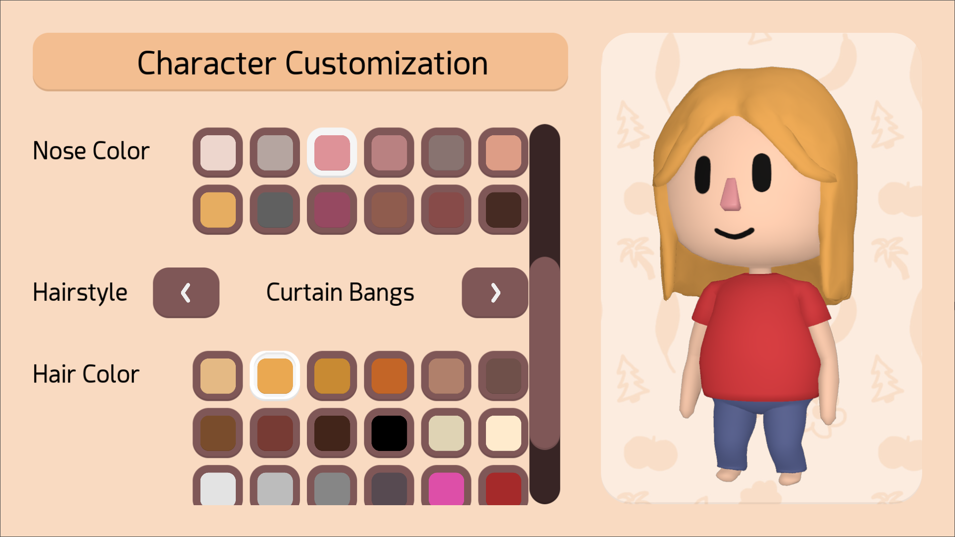 - Customize your character, chosse from a variety of hairstyles, skin tones, etc.